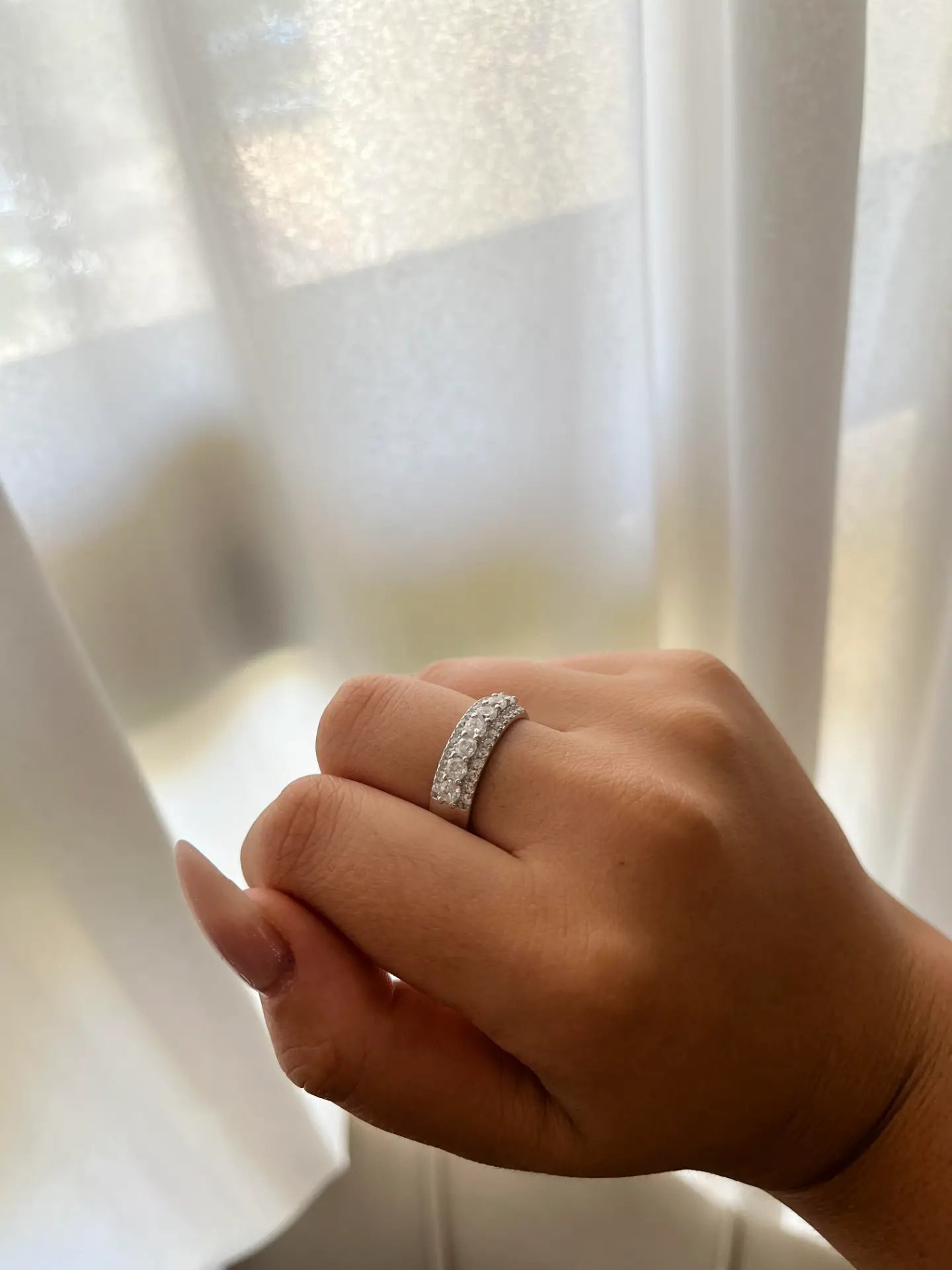 ✨ טבעת הכסף "אלגנס" היא הבחירה המושלמת לכל אישה שמחפשת לשדר יוקרה ואופנה. עשויה מכסף סטרלינג 925 איכותי ומשובצת בשורה כפולה של אבני זירקון נוצצות, הטבעת הזו מבטיחה להביא איתה נגיעה של זוהר לכל הופעה 🌟.