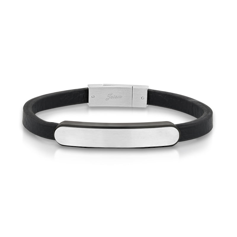 צמיד לגבר עשוי עור בצבע שחור מעוצב משולב עם פלטה שחורה מט