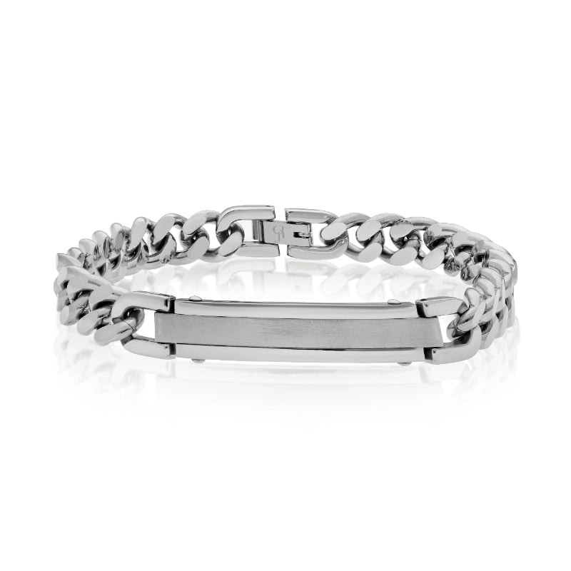 צמיד גורמט בעיצוב מודרני ומינימליסטי, המשלב שרשרת גורמט רחבה עם לוח מרכזי בעל נוכחות נקייה ואחידה. המבנה המאסיבי של השרשרת לצד הלוח המודגש יוצר מראה גברי, אלגנטי ובעל אופי חזק.