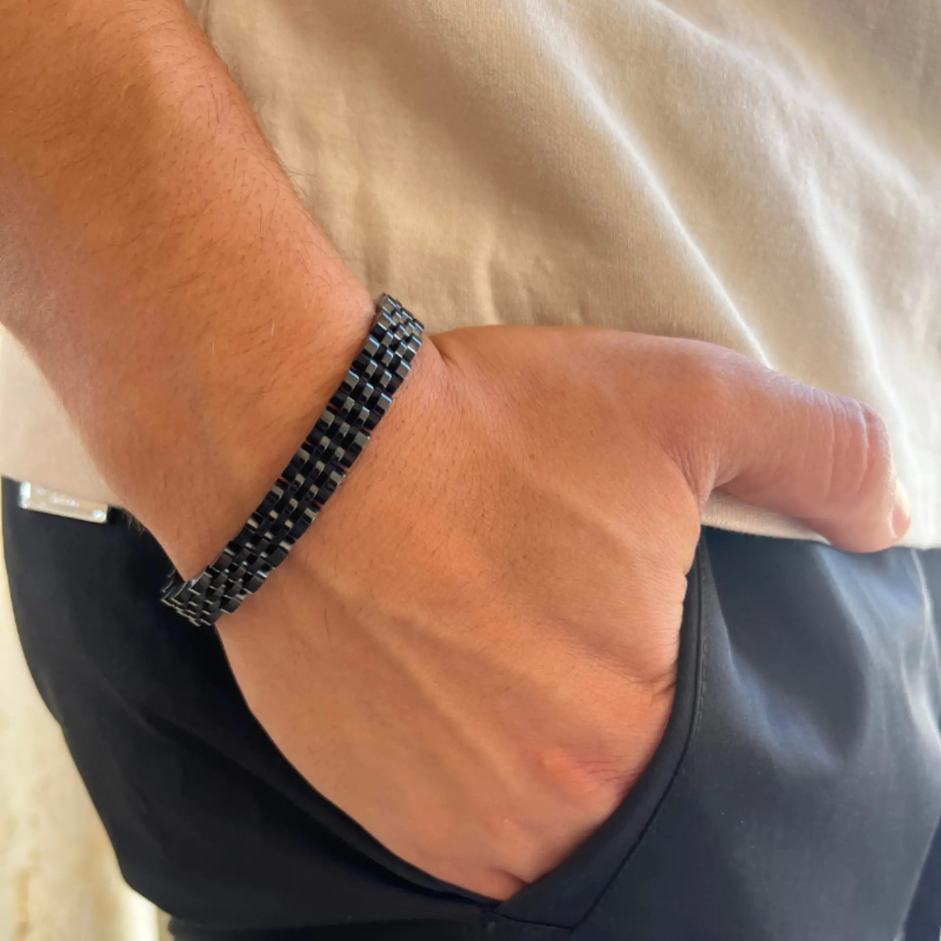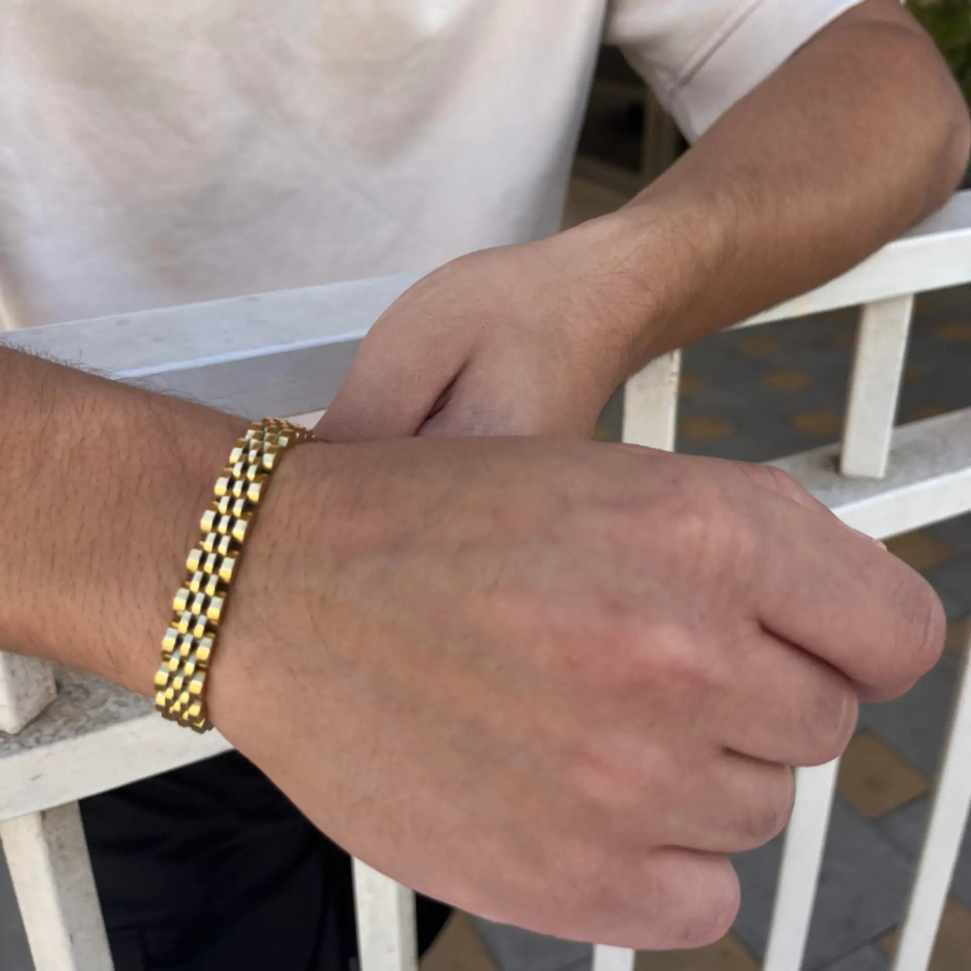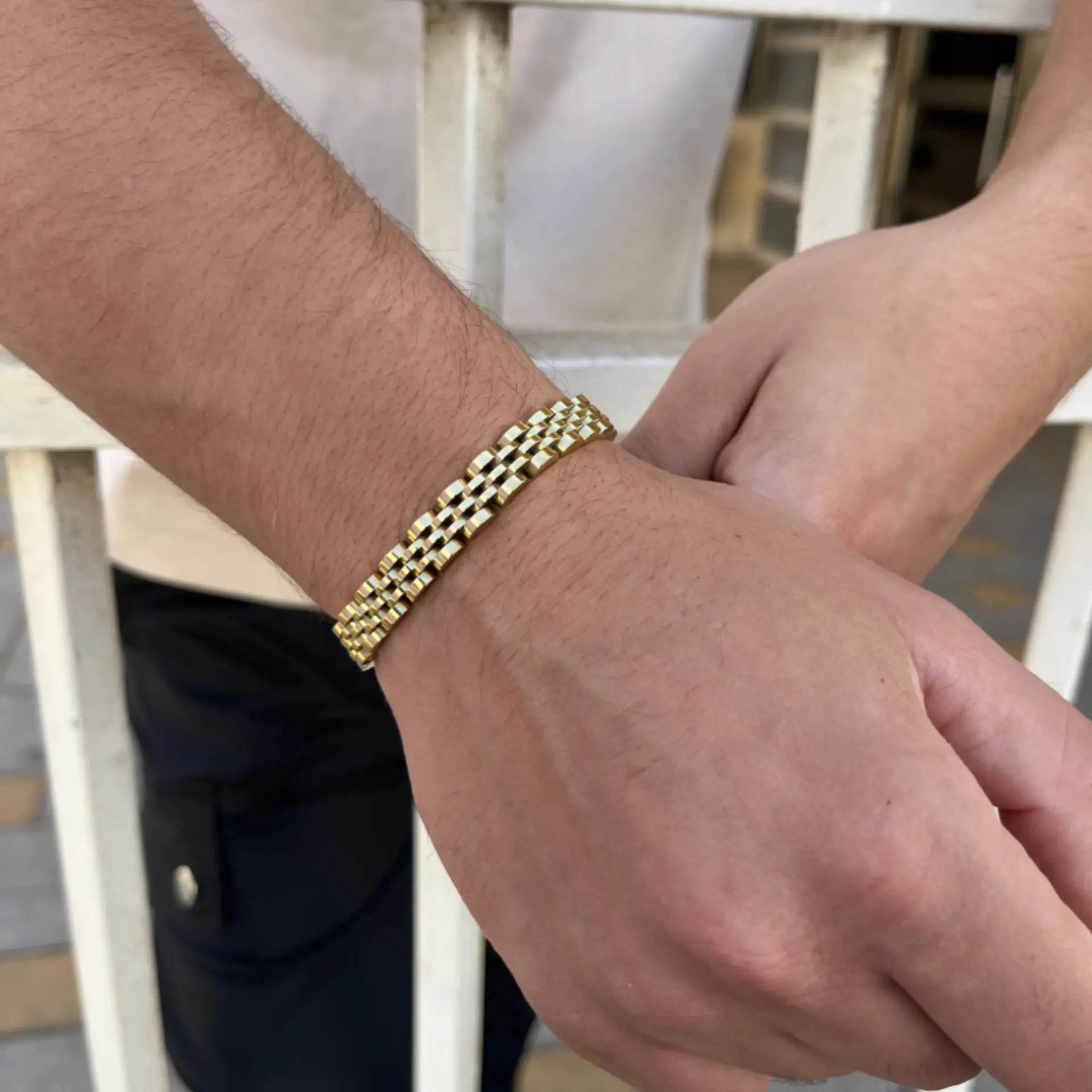 צמיד גברי אלגנטי מבית - צמיד יוקרתי ומרהיב, עשוי מפלדת אל חלד באיכות הגבוהה ביותר. מגיע בשני עיצובים קלאסיים: גימור זהב מלא מבריק או שילוב ייחודי של כסף וזהב. הצמיד מתהדר בעיצוב מדורג עם חוליות רחבות היוצרות מראה עשיר ומסוגנן. הסוגר של הצמיד נוח ואמין, מה שהופך אותו לאביזר מושלם להשלמת מראה אלגנטי ביום יום או כאביזר ייחודי לאירועים מיוחדים. ✨