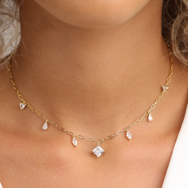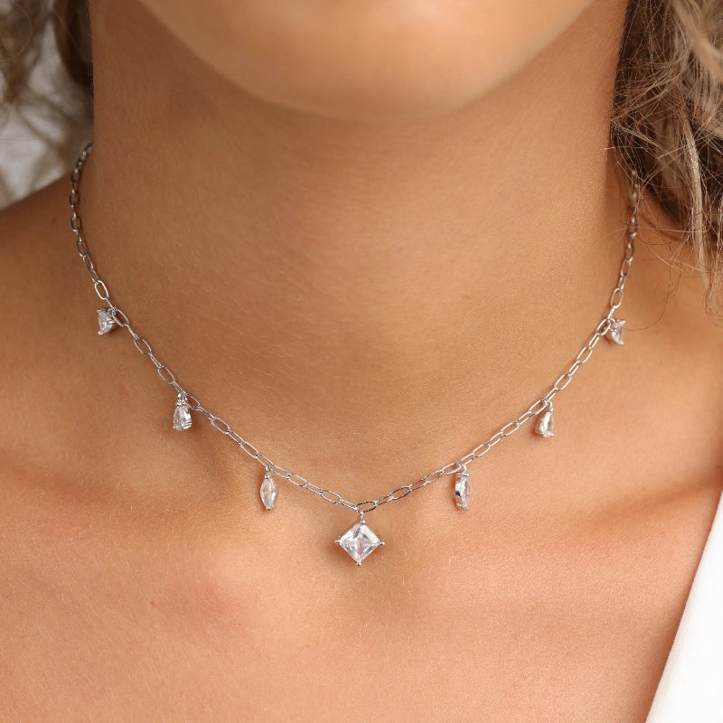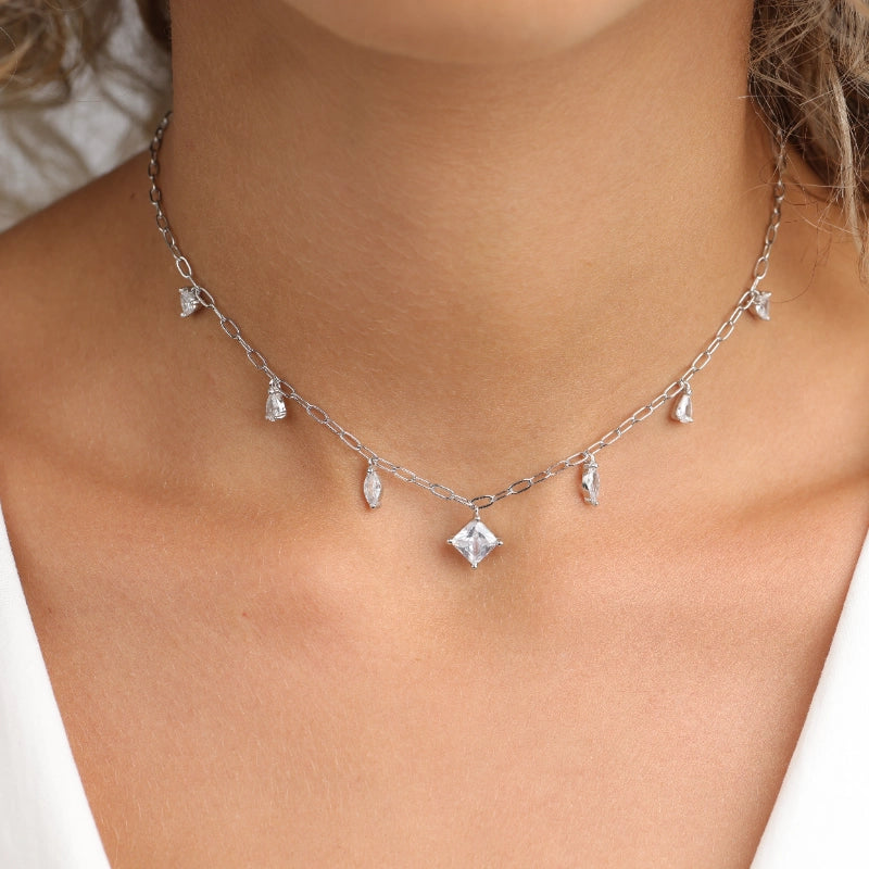 שרשרת כסף צ'וקר תליוני טיפות משולב עם תליון ריבוע